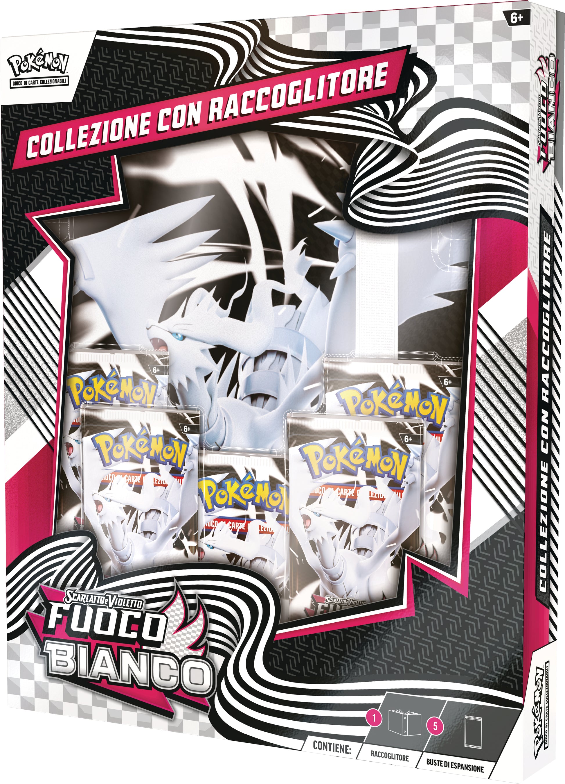 La collezione con raccoglitore dell’espansione Scarlatto e Violetto – Fuoco Bianco del GCC Pokémon contiene:• Un raccoglitore a tema con pagine da nove tasche• Cinque buste dell’espansione Scarlatto e Violetto – Fuoco Bianco del GCC Pokémon• Una lista delle carte per collezionisti