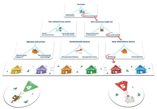 Gli altri giocatori dovranno intuire le scelte del giocatore in turno e indovinare quindi la casa di arrivo.